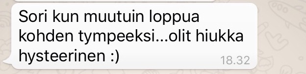 Jätän tämän viimeisen viestikohtauksen tähän näin. Yöunet meni, mutta onneksi vain ne. Myötätunnon osoitukset kommentteihin. Kiitos.